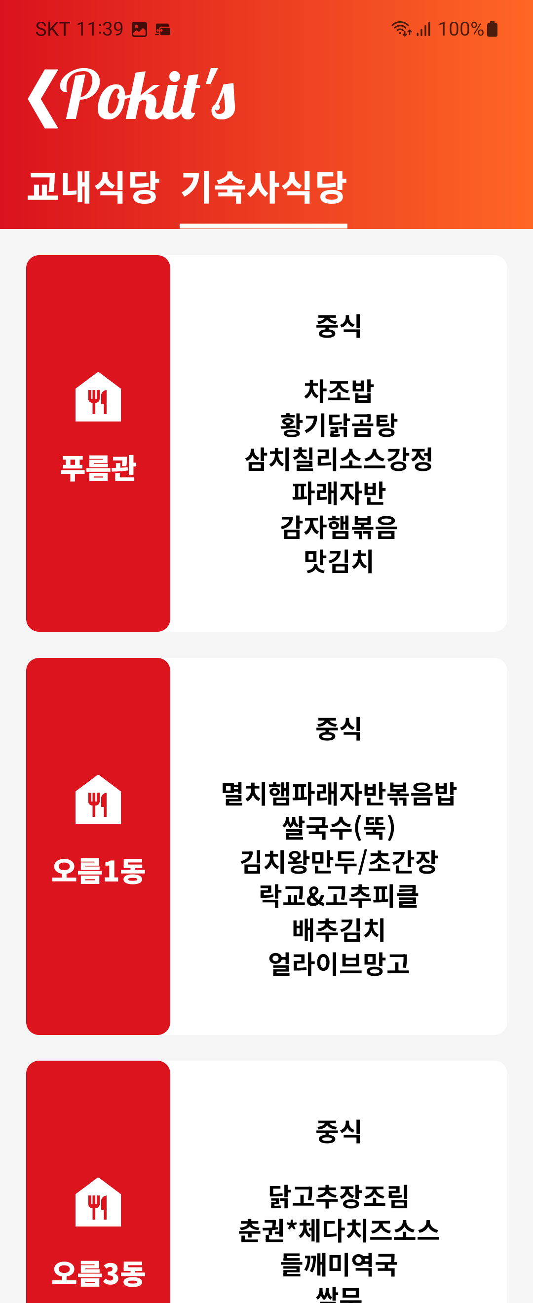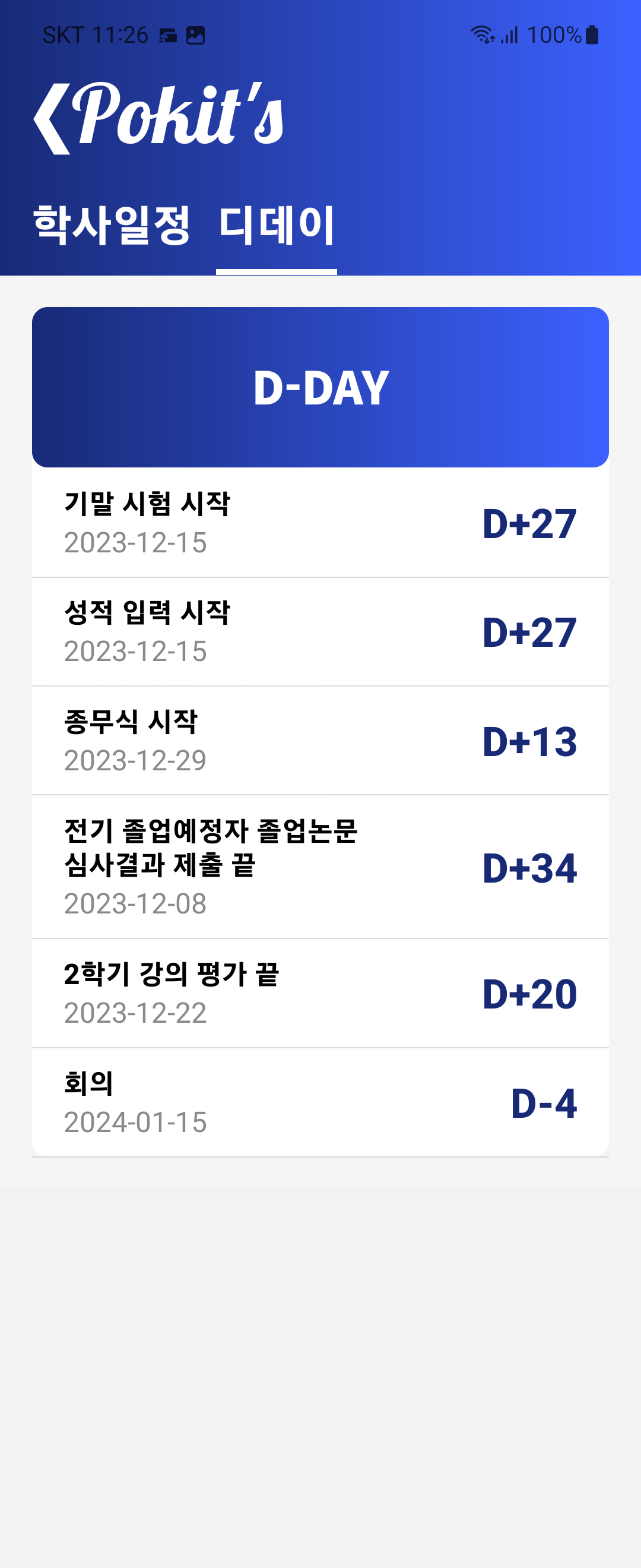 포킷츠 메인 페이지, 식당 페이지, 일정 / 디데이 페이지
