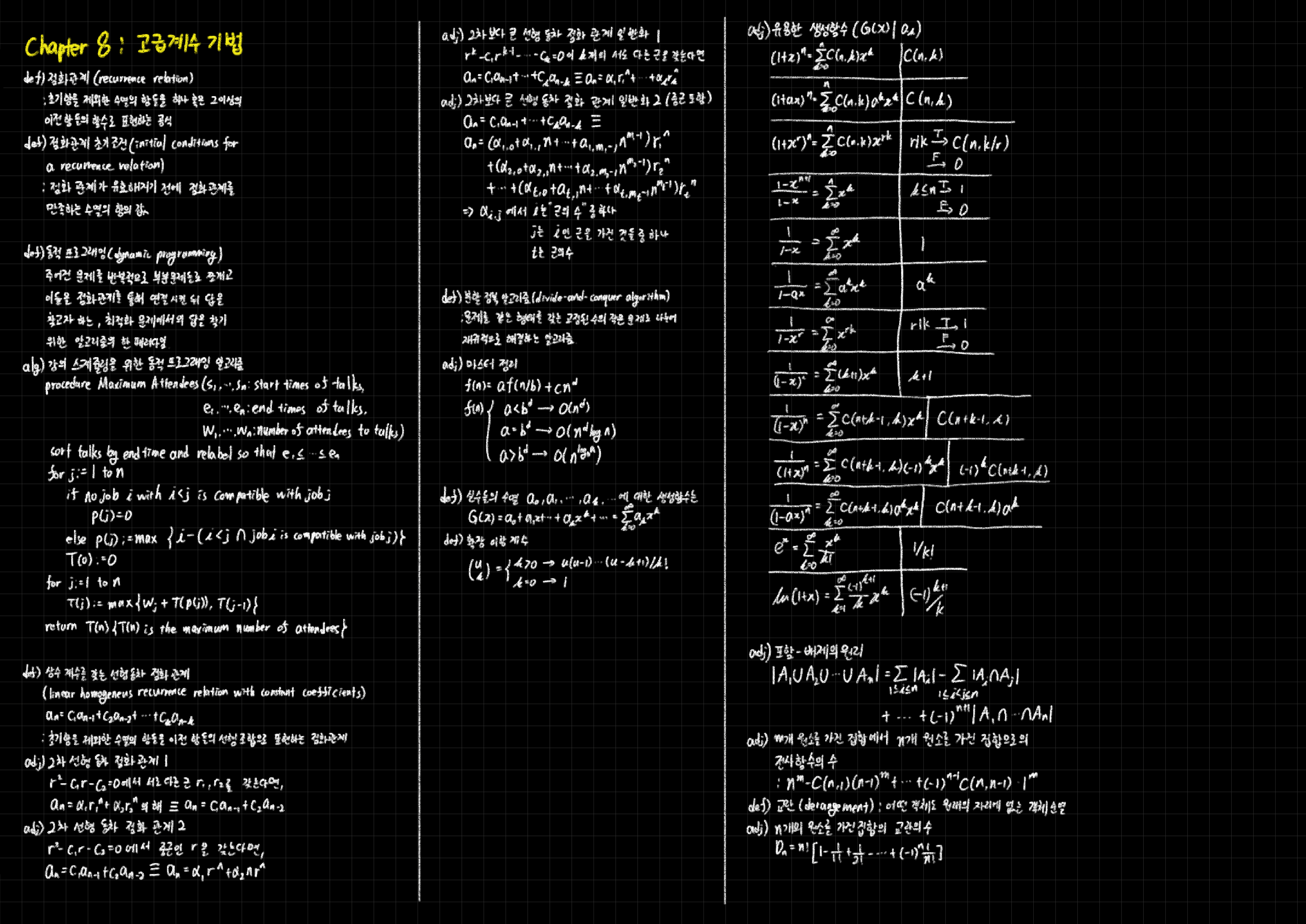 [이산수학 정의보감] Chapter 8 : 고급 계수 기법  (0) 2024.08.14
