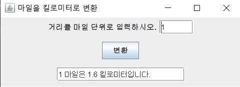 JLabel label = new JLabel("거리를 마일 단위로 입력하시오.");