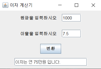 JTextField text3 = new JTextField("이자는 연 75만원 입니다.", 20);